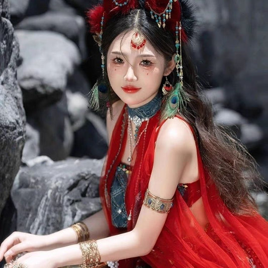 Silk Road Glamour : Bold & Mysterious--Flowing fabrics, intricate metalwork, and rich jewel tones inspired by ancient traders.