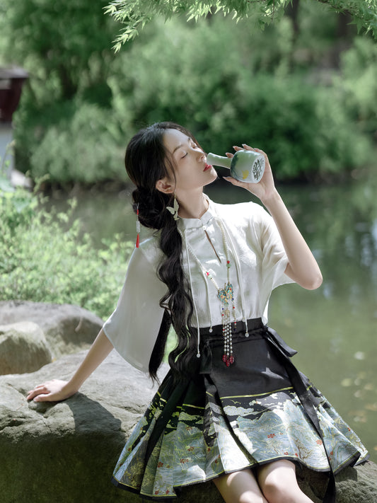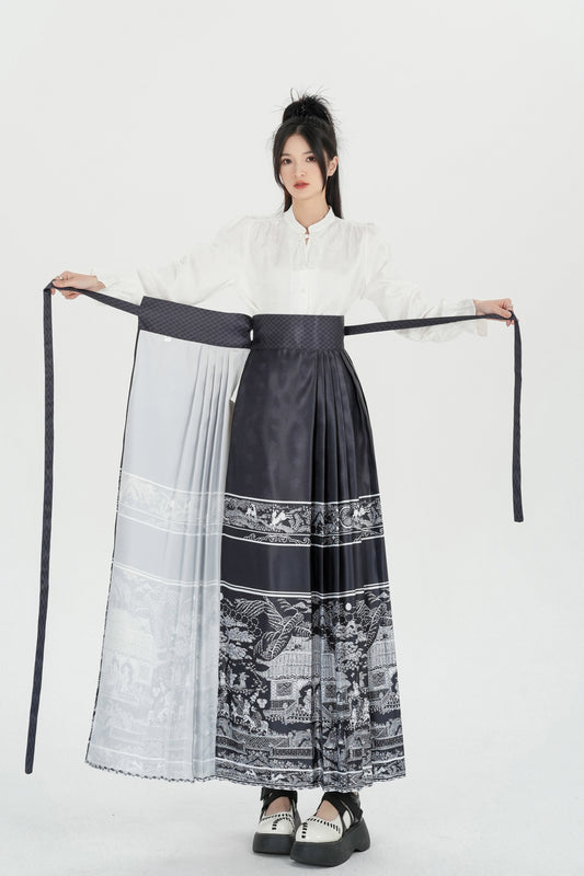 Horse Face High Waist Pleated Hanfu Qipao Cheongsam Dress Skirt, MaMianQun gifts for women 2024 #12186
