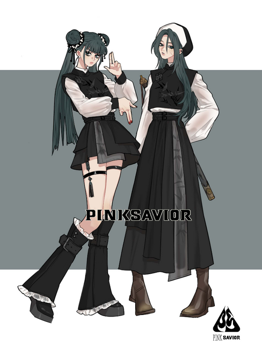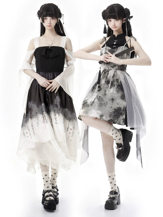 New Chinese Style Mix Slim Ink Skirt Pants Suit
