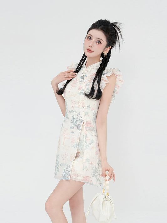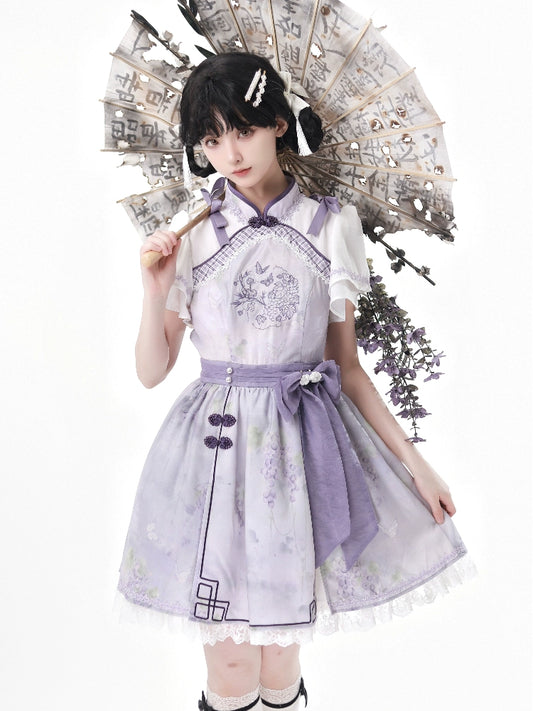 Flower Poetry Halter Neck Cheongsam for Girls Han elements