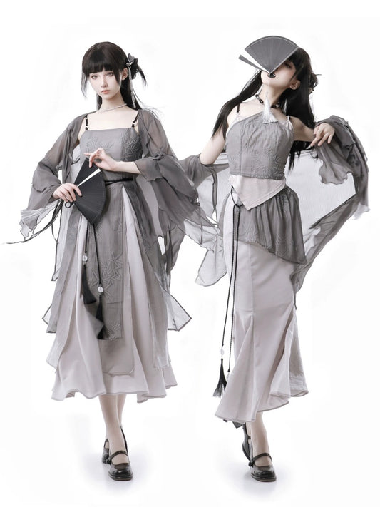 New Chinese Style Mix Slim Suspender Skirt Suit