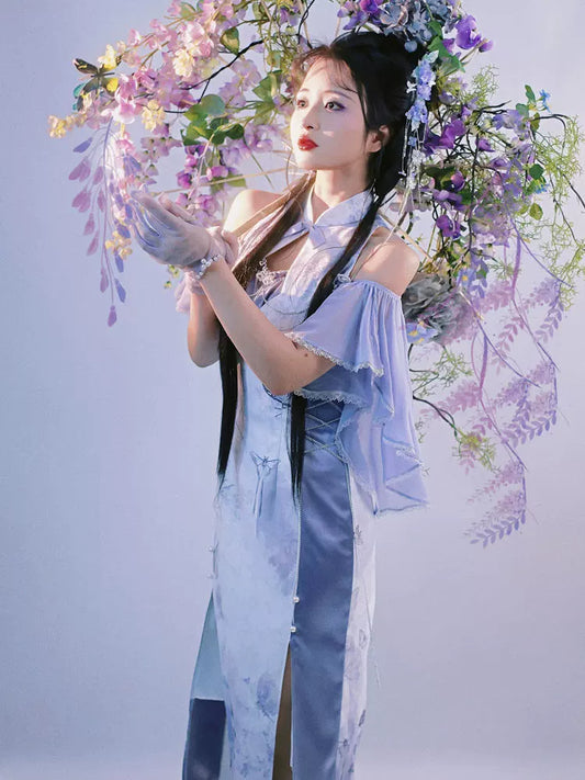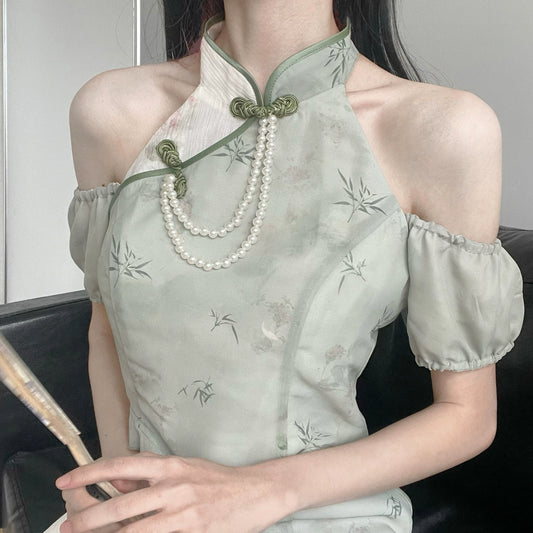 Flower Poetry Chinese style cheongsam halter neck dress women