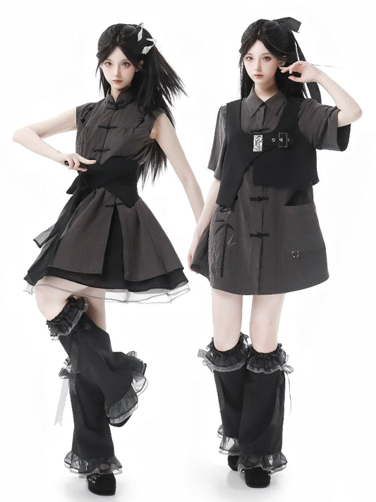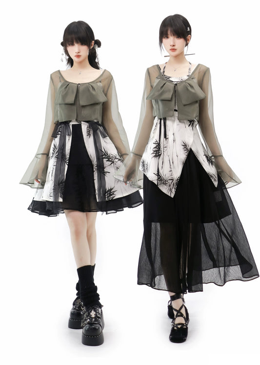 New Chinese Style Mix Slim Skirt Cool Feeling Suit