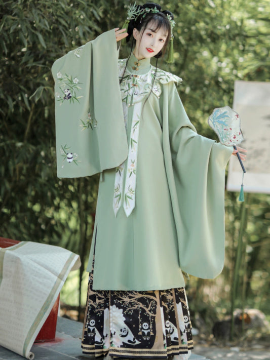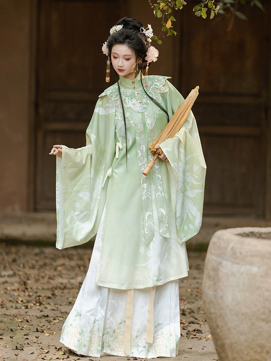 LOOKBOOK SERIES Ming Dynasty Horse Face Skirt Green Beige Set