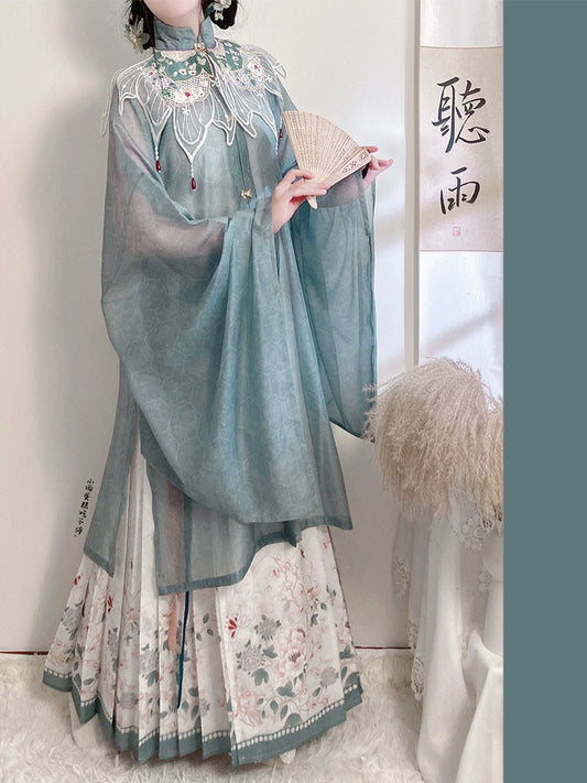 LOOKBOOK SERIES Ming Dynasty Horse Face Skirt Pale Blue Set