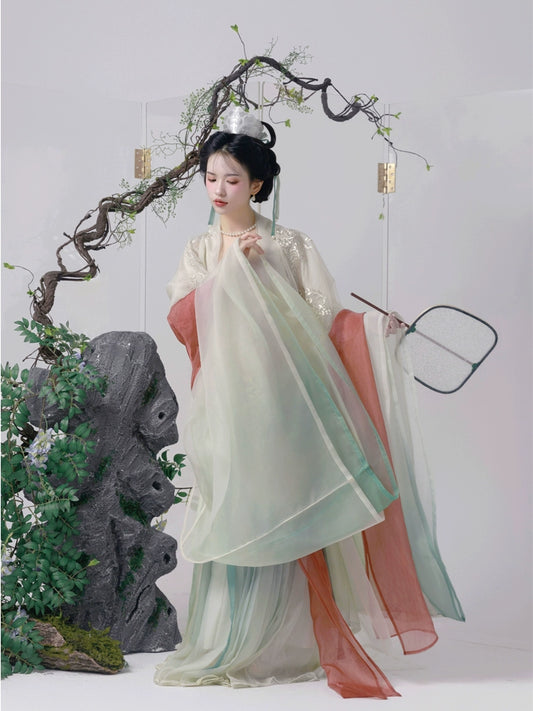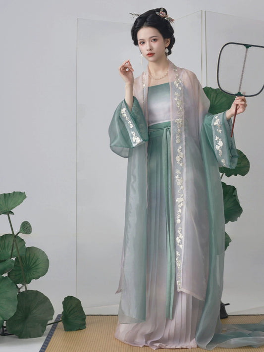 Shangyao Retreat Series Green Pink Gradient Song Hanfu