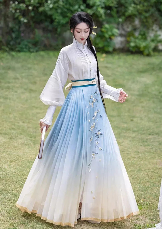 馬面オリジナル中国風グラデーション刺繍漢服3点セット春夏普段着