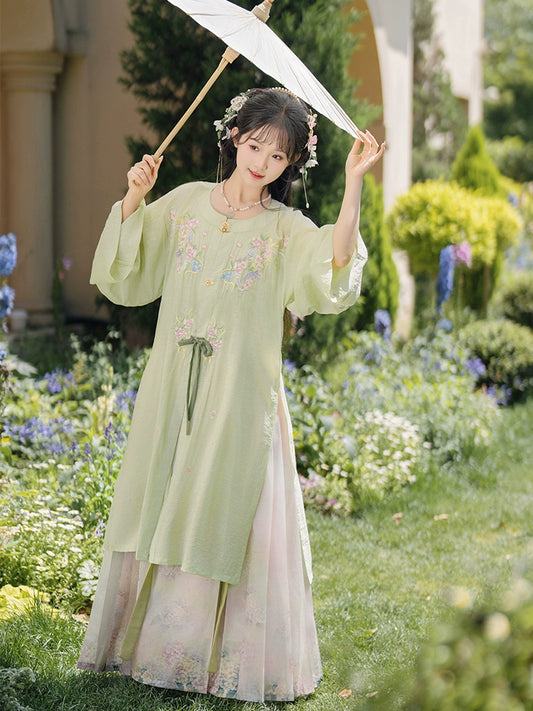 LOOKBOOK SERIES Ming Dynasty Pink Green Skirt Hanfu
