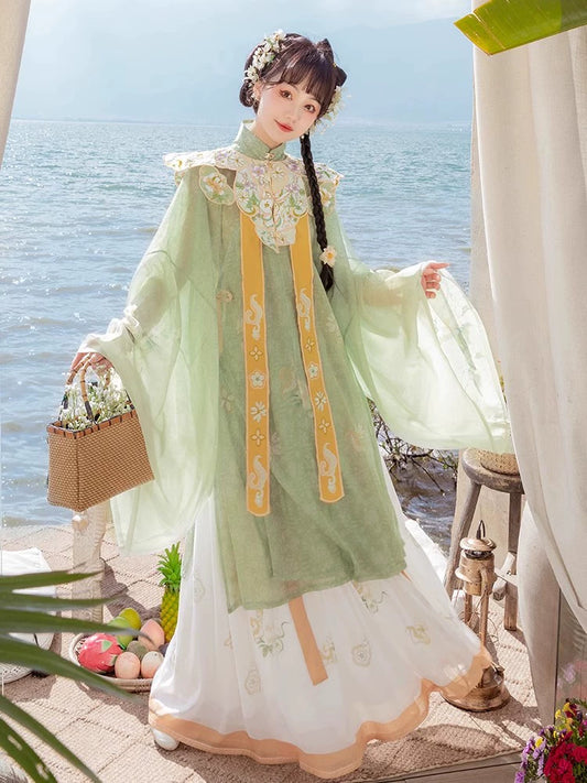 LOOKBOOK SERIES Ming Dynasty Horse Face Skirt Green Yellow Set