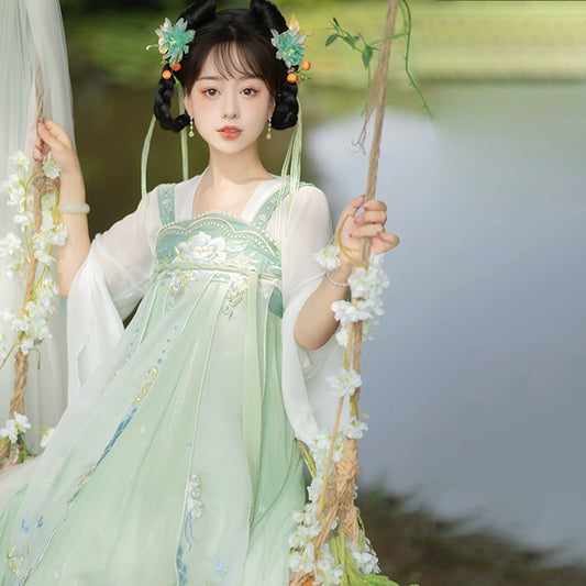 LOOKBOOK SERIES Tang Dynasty Green Blue Shirt Hanfu