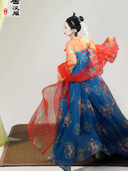 LOOKBOOK SERIES Tang Dynasty Blue Orange Shirt Hanfu