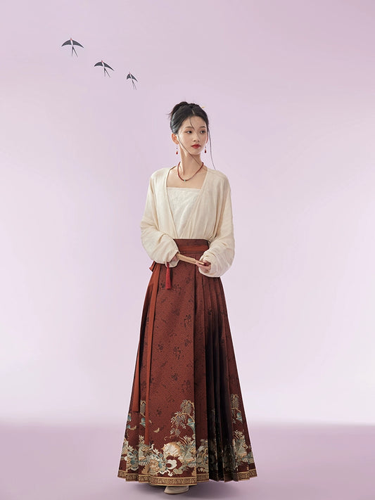 エレガントな漢服アンサンブル:春、夏、秋の普段着、通勤、外出に適した明王朝風の馬の顔のスカートセット