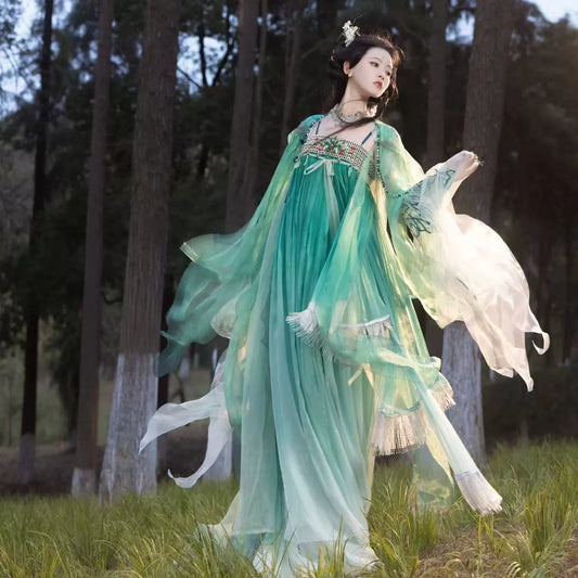 Oriental Aesthetics Series Emerald Butterfly Dancing Hanfu Dress