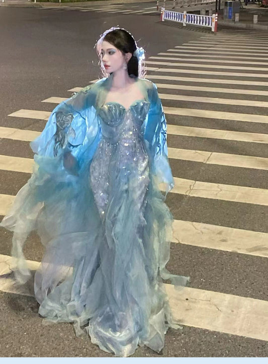Oriental Aesthetics Series Blue Mermaid Dancing Hanfu Dress