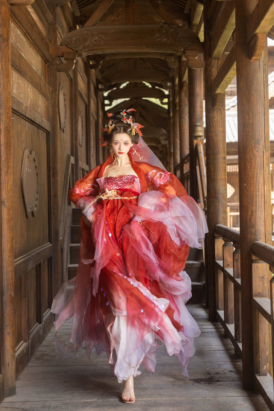 Oriental Aesthetics Series Red Butterfly Dancing Hanfu Dress