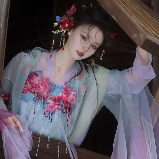 Oriental Aesthetics Series Peony Flowers Dancing Hanfu Dress
