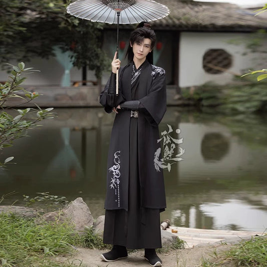 Men'S Hanfu Wei-Jin Style Black Red Long Sleeve Shirt