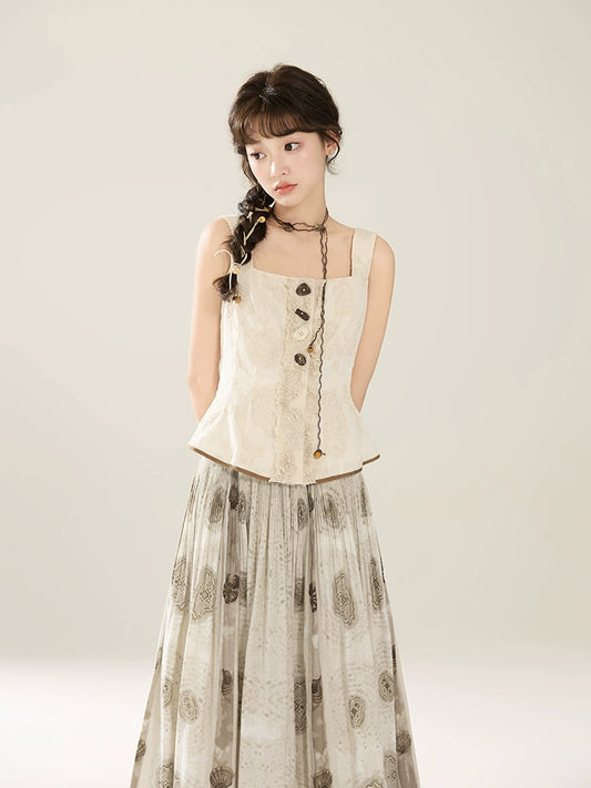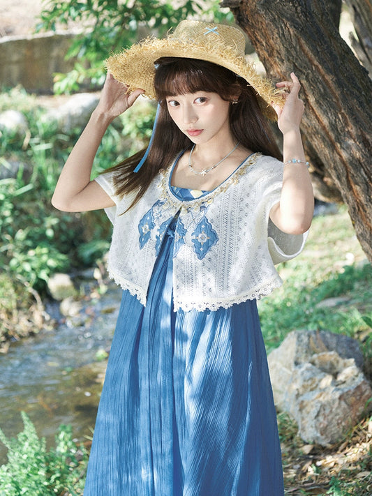 Lookbook Series Plus Size Printing Hanfu 2586+2587 Beige Blue
