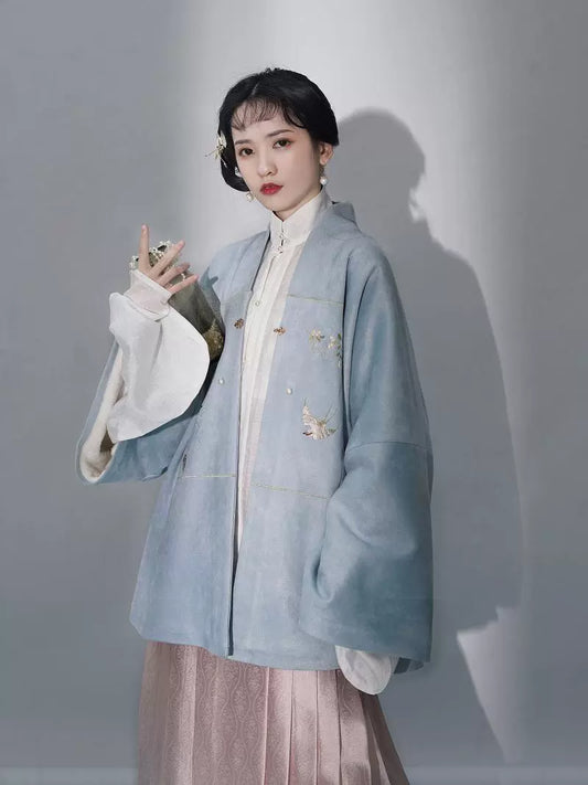 Shangyao Retreat Series Blue Satin Ming Hanfu