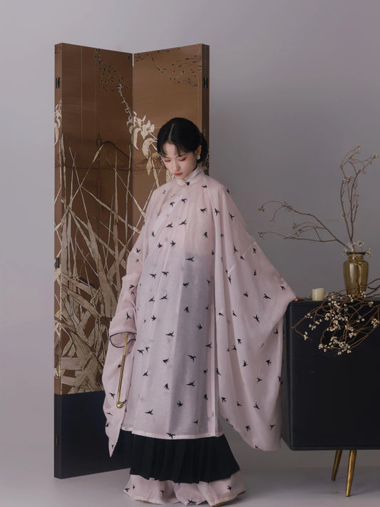 Shangyao Retreat Series Pink Flocking Ming Hanfu