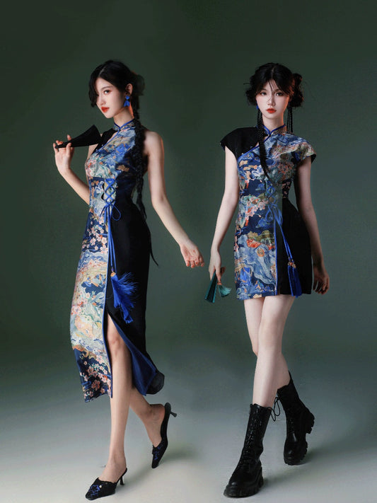 New Chinese Style Velvet Silk Cheongsam Qipao Rising Tide