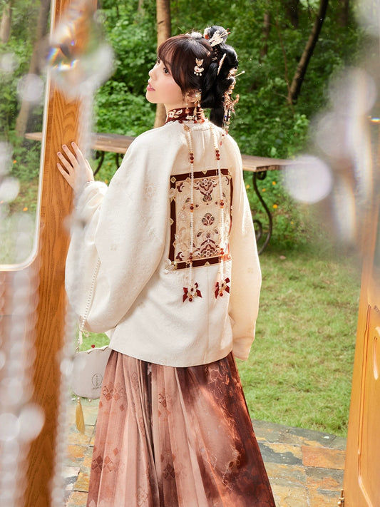 "Zara meets Zhou Dynasty. Minimalist jackets with hidden cloud motifs and qipao-collar blouses for stealth wealth dressing. Tradition whispered, not shouted."