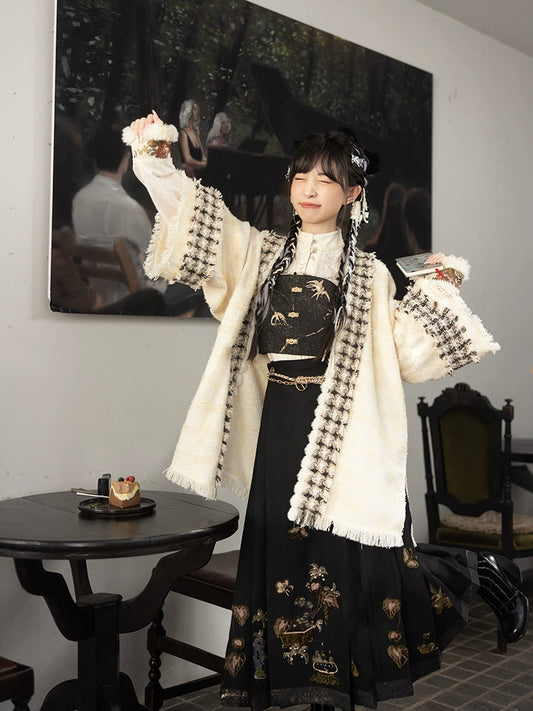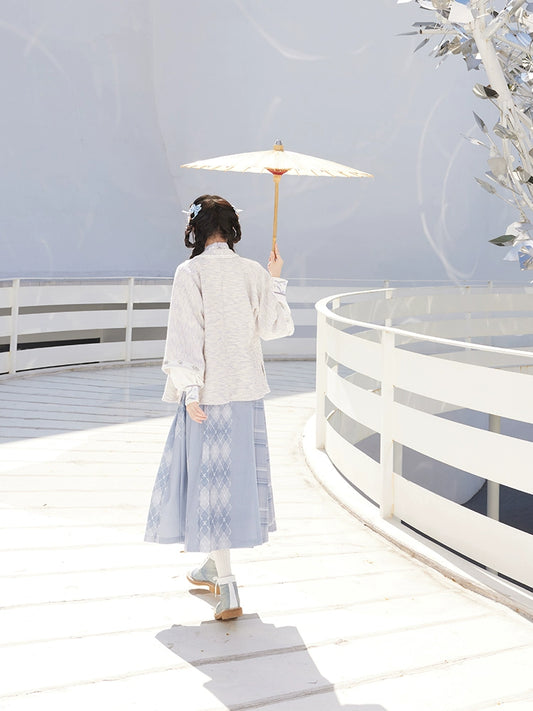 "Zara meets Zhou Dynasty. Minimalist jackets with hidden cloud motifs and qipao-collar blouses for stealth wealth dressing. Tradition whispered, not shouted."