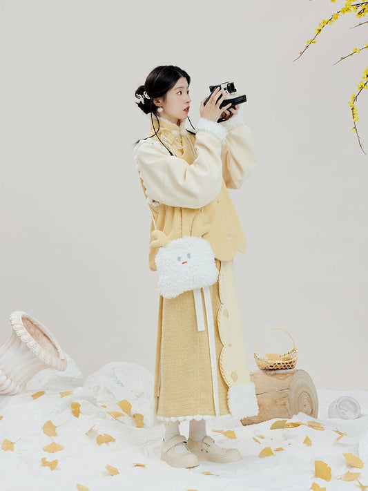"Zara meets Zhou Dynasty. Minimalist jackets with hidden cloud motifs and qipao-collar blouses for stealth wealth dressing. Tradition whispered, not shouted."