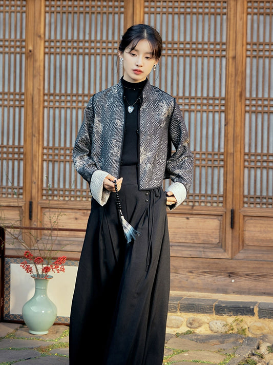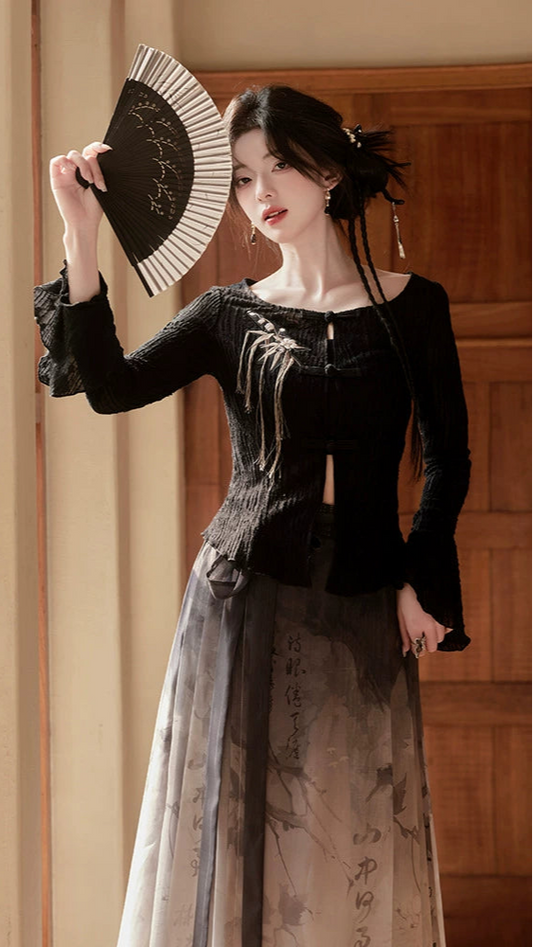 "Zara meets Zhou Dynasty. Minimalist jackets with hidden cloud motifs and qipao-collar blouses for stealth wealth dressing. Tradition whispered, not shouted."