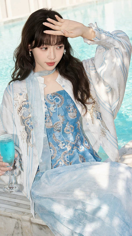 "Zara meets Zhou Dynasty. Minimalist jackets with hidden cloud motifs and qipao-collar blouses for stealth wealth dressing. Tradition whispered, not shouted."