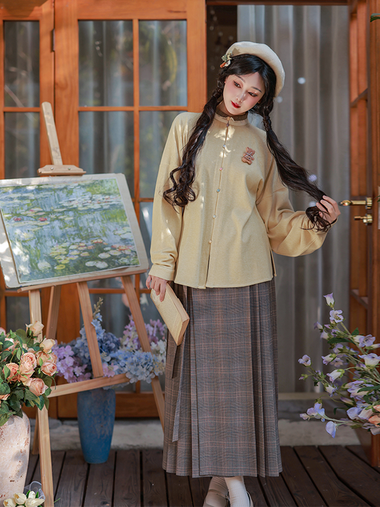 "Zara meets Zhou Dynasty. Minimalist jackets with hidden cloud motifs and qipao-collar blouses for stealth wealth dressing. Tradition whispered, not shouted."