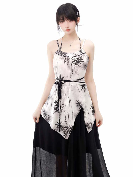 New Chinese Style Mix Slim Skirt Wash Painting Suit