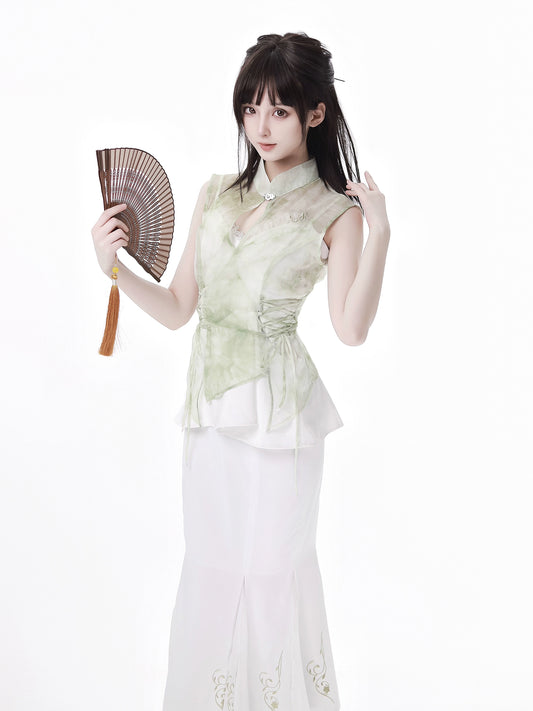 New Chinese Style Mix Slim Skirt Cool Sensation Suit