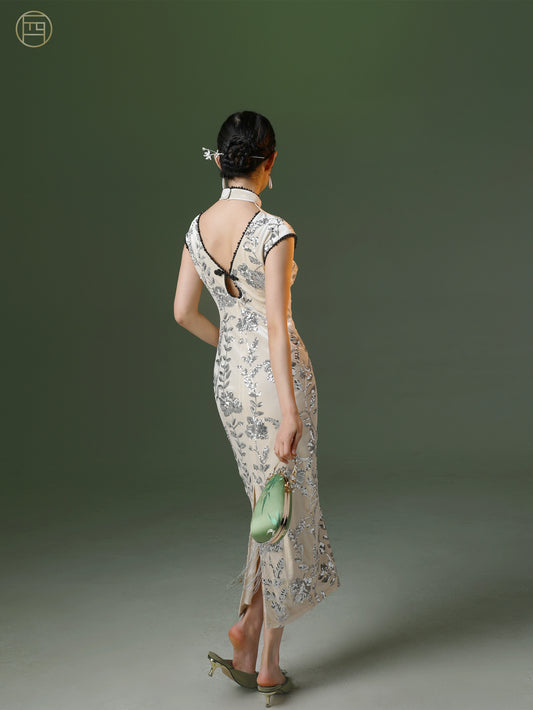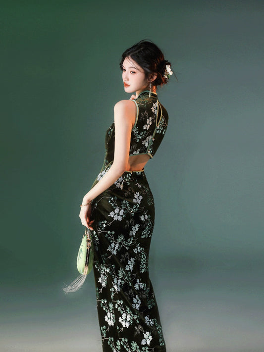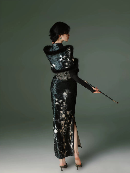 New Chinese Style Velvet Silk Cheongsam Qipao Vine Shadow