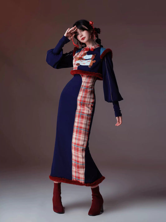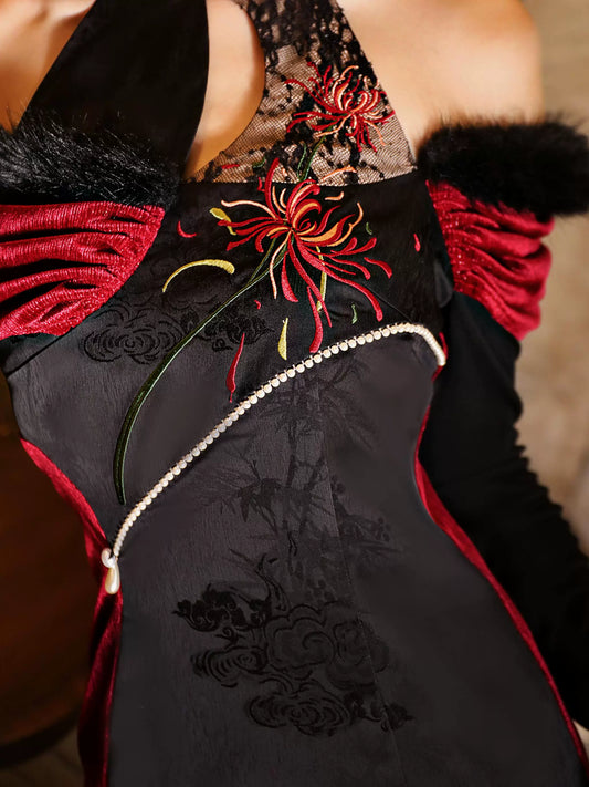 New Chinese Style Velvet Silk Cheongsam Qipao Stacking Music