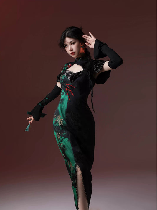 New Chinese Style Velvet Silk Cheongsam Qipao East Witch