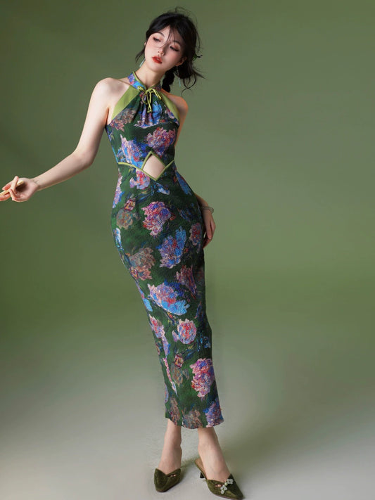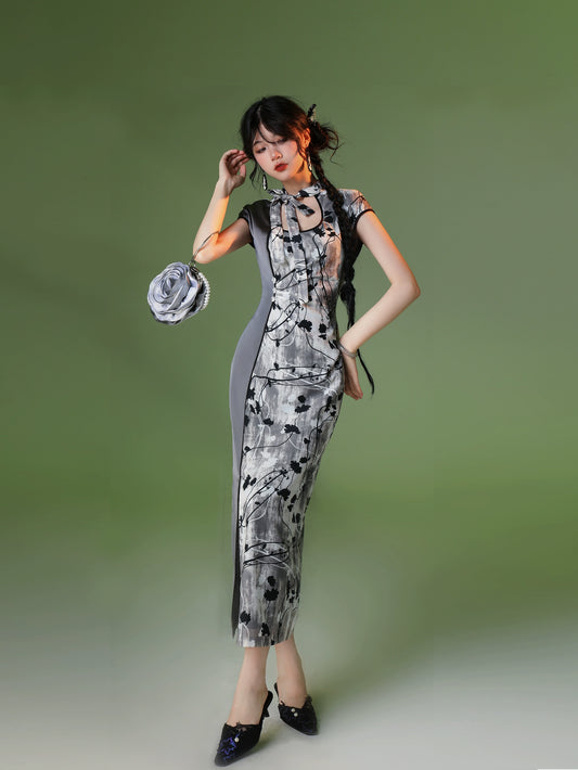 New Chinese Style Velvet Silk Cheongsam Qipao Floating Light