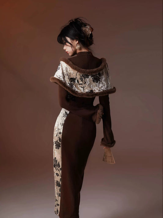 New Chinese Style Velvet Silk Cheongsam Qipao Drunk Lovesickness
