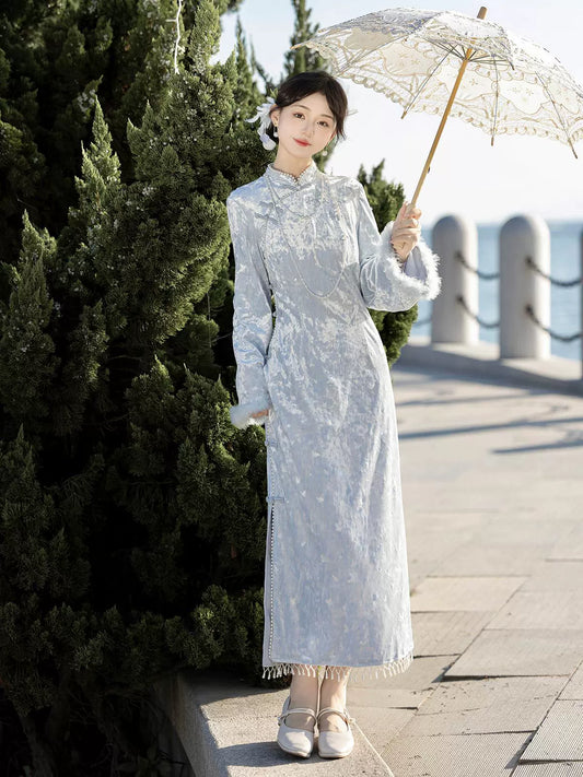 New Chinese Style Lolita Blue Gray Qipao