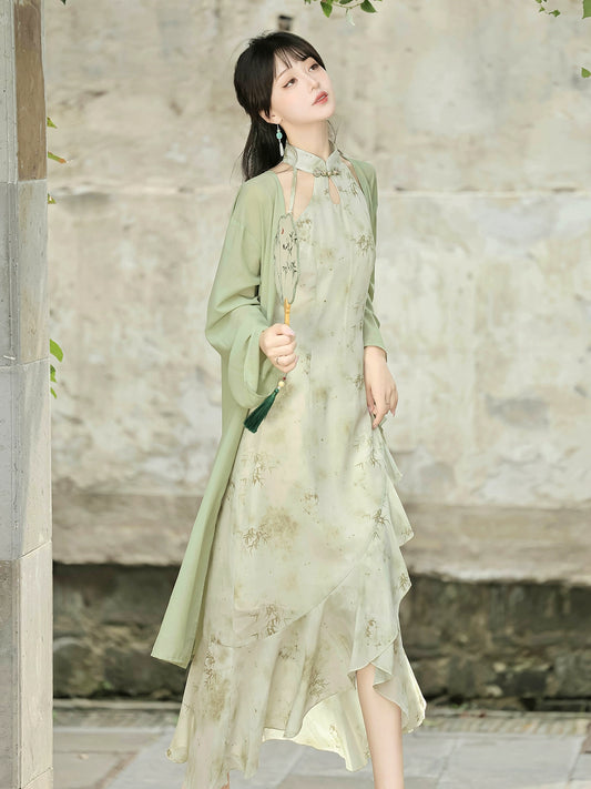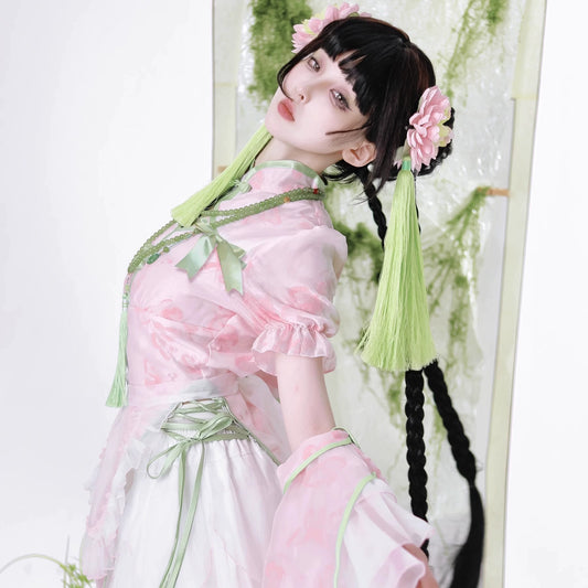 New Chinese Style Lolita Pink Green Qipao