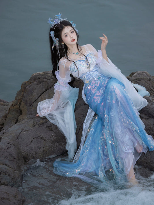 Cloud-Kissing Nature Series The Moon Rises Over the Sea Hanfu