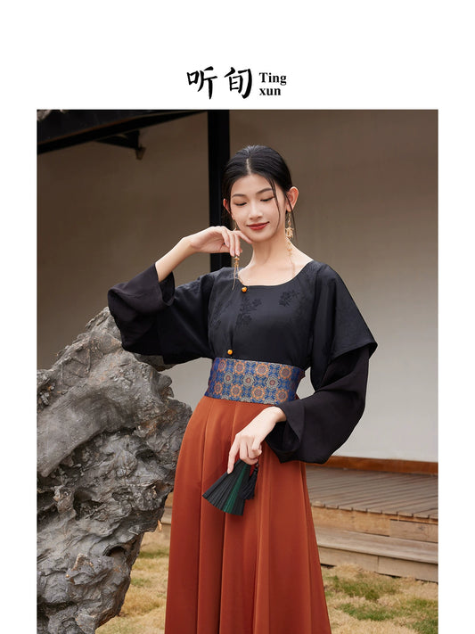 Lookbook Series Original Hanfu Ming Dynasty Cross-Collared Cross-Dressed Horse-Faced Skirt