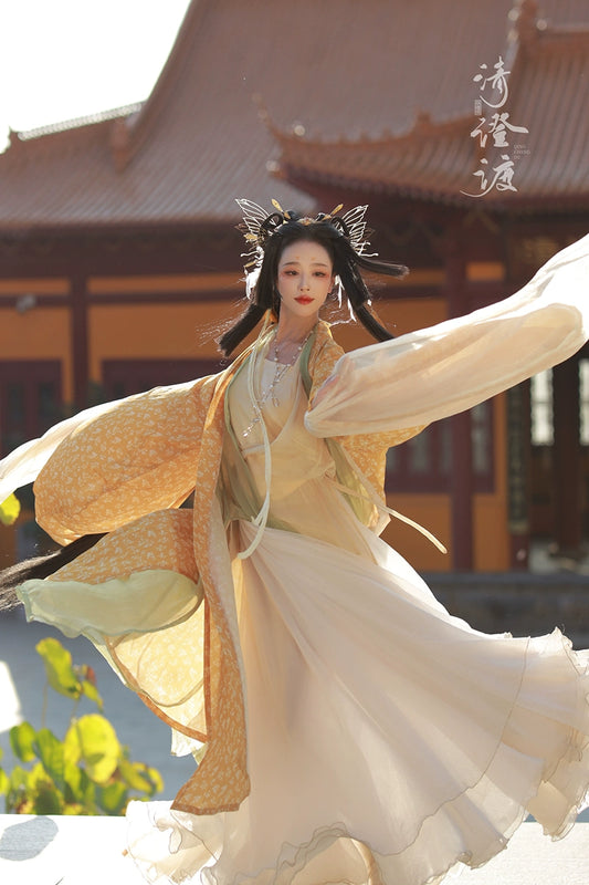 Twelve Flower Goddesses Series Apricot Hanfu Dress