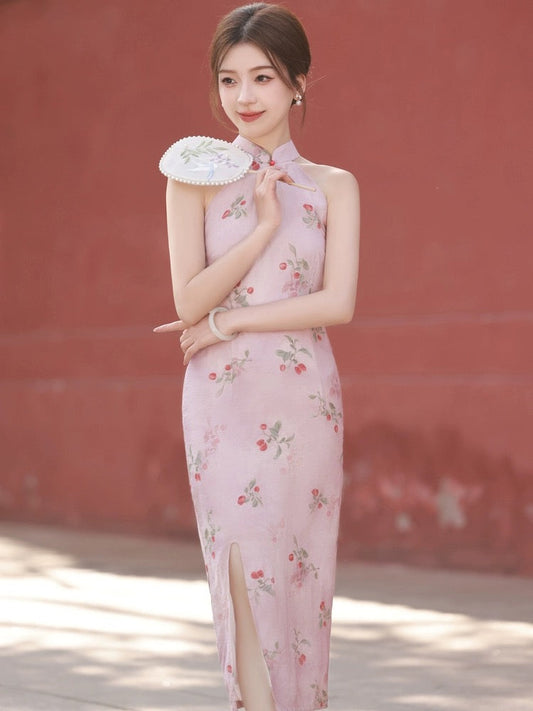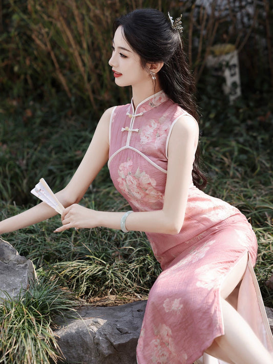 現代化された袍: 2024 年新作若い女性のピンクのサマードレス、普段着に最適