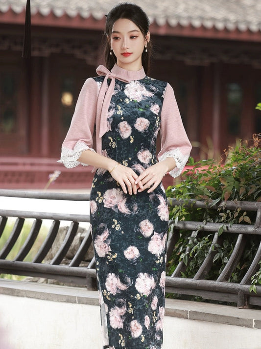 ヴィンテージエレガンス:2024秋の新作袍ドレス、レトロなツイストと長袖