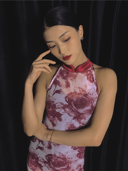Flower Poetry Chinese style cheongsam halter neck dress women