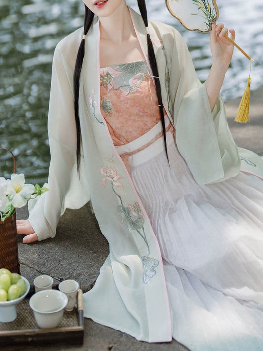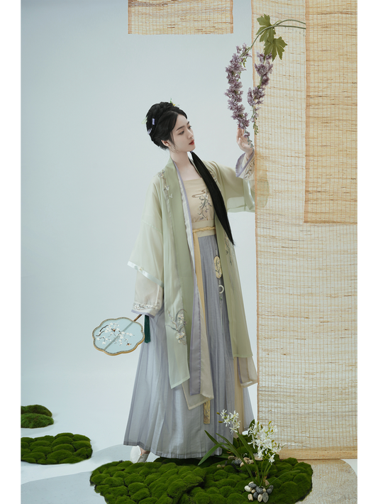 "Scholar's elegance perfected. Slim silhouettes with delicate peony embroidery mirror Song paintings' poetic aesthetic. The ideal choice for those who whisper 'less is more' through their style."