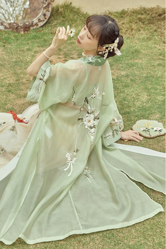 "Scholar's elegance perfected. Slim silhouettes with delicate peony embroidery mirror Song paintings' poetic aesthetic. The ideal choice for those who whisper 'less is more' through their style."