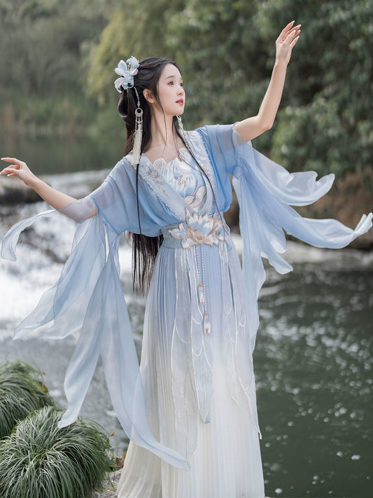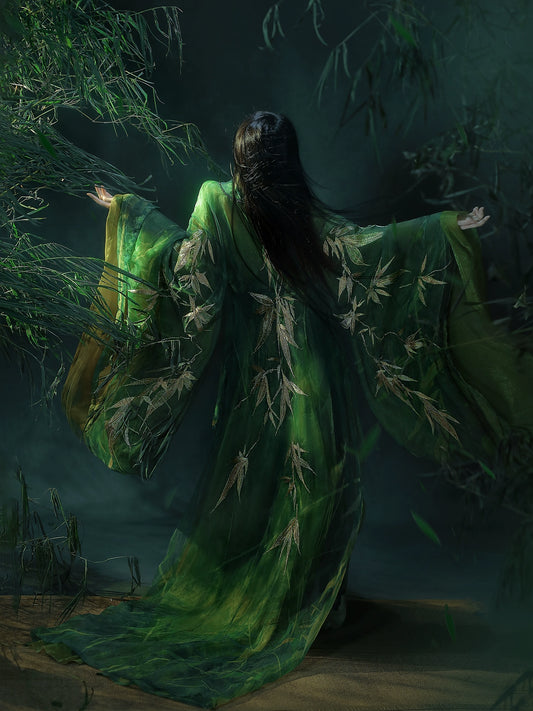 "Ancient Chinese romanticism reawakened. Flowing wide sleeves and layered silhouettes capture the era of bamboo forest poets. These are the original 'free-spirit' designs that defied conventions."