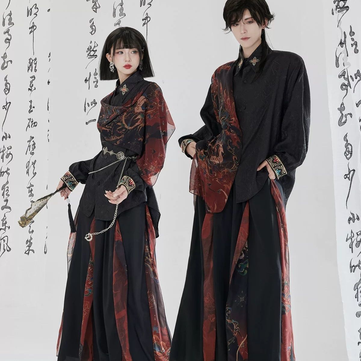 Jacket Skirt (Shirt Skirt): A Jacket With A Skirt Underneath, A Long-Sleeved Jacket With A Cross-Collar And Right Gusset. Most Of The Clothes Have Pipa Sleeves That Close The Cuffs. The Lower Skirt Is Usually Paired With A Horse-Face Pleated Skirt Or An Ordinary Pleated Skirt.